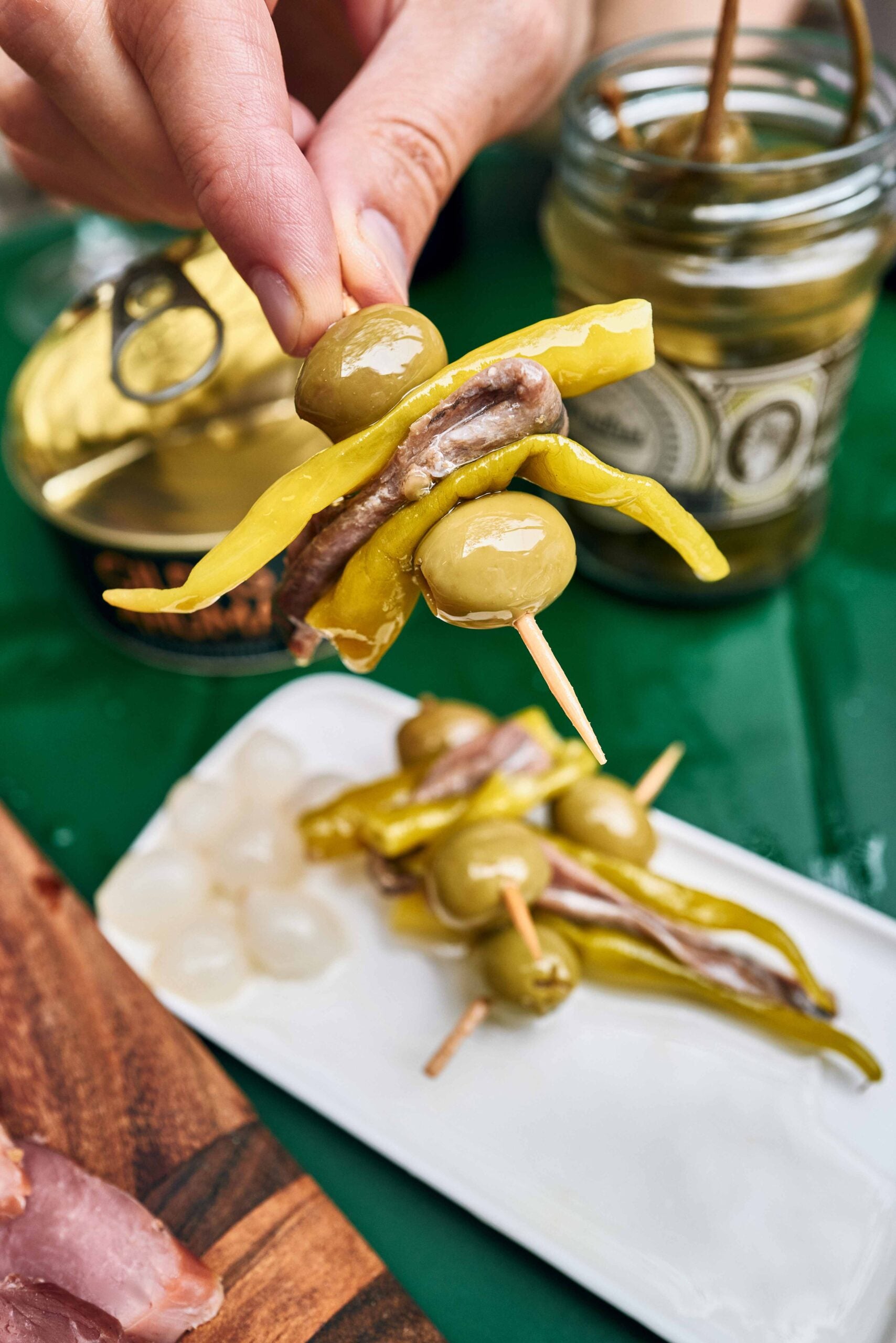 La Gilda is one of the oldest Basque pintxos. Its name comes from the 1946 movie "Gilda", whose character has the same attributes as pintxo... salty, green and spicy... and on this occasion also smoked.