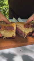 Our pastrami is hot smoked and made in an artisanal and traditional way. We recommend steaming it before serving to get an even more melty texture (colander over a pot of boiling water). You can combine it with pickles, mustard and a good sourdough bread.